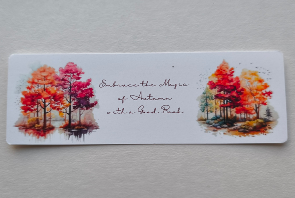 Featuring colourful trees and text "Embrace the Magic of Autumn with a Good Book", these bookmarks perfectly capture the essence of autumn. Made from premium 350gsm white semi-glossy satin coated paper, they offer the ideal blend of sturdiness and slimness, ensuring a smooth fit in your favorite books.