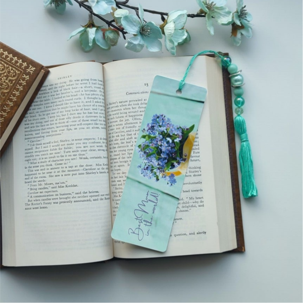 Celebrate the most special mum with this beautifull bookmark, featuring delicate forget-me-not flowers and a heartfelt message: "Best Mum in the World." A perfect reminder of love and appreciation with every page turn.