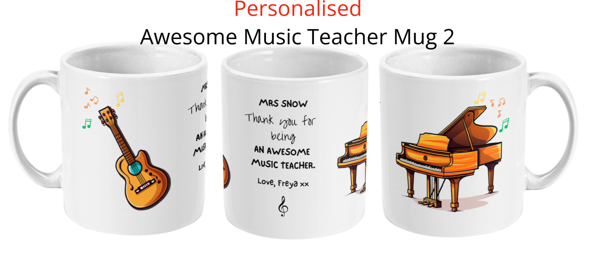 Show your appreciation with a thoughtful, personalised gift your music teacher will truly treasure. Our Music Teacher Mugs are perfect for piano teachers, violin tutors, or any inspiring music educator at the end of the school year, recital season, or Christmas.