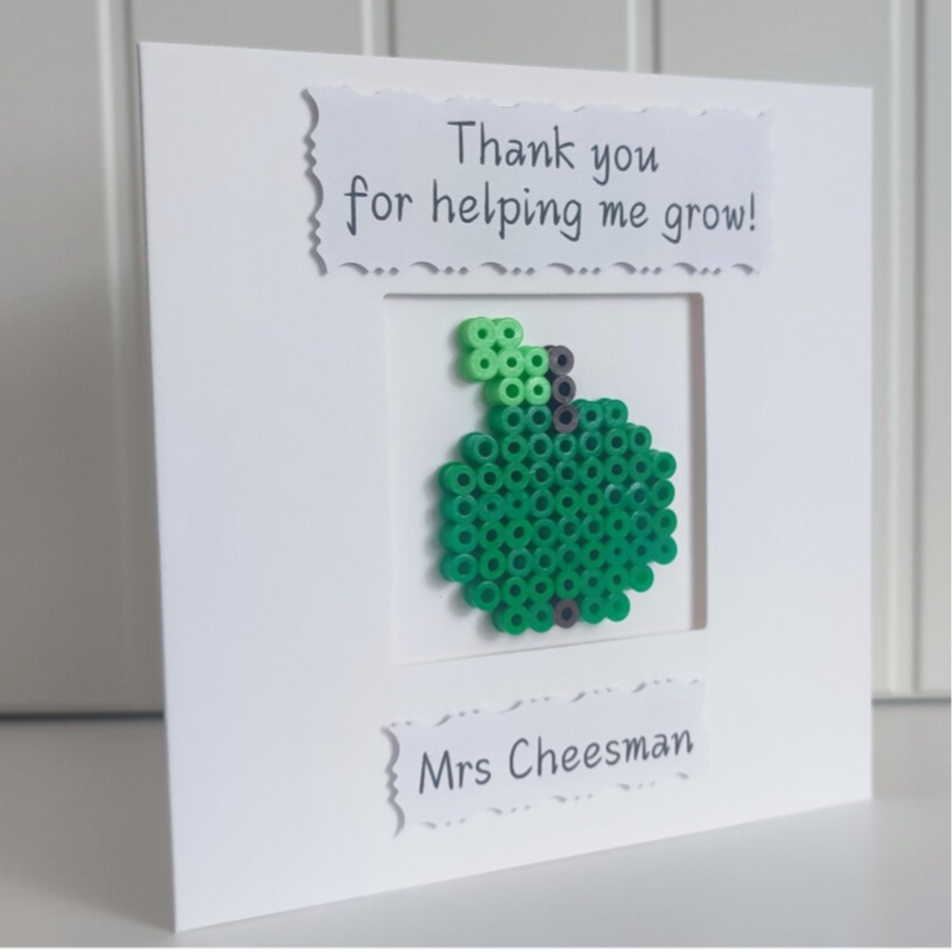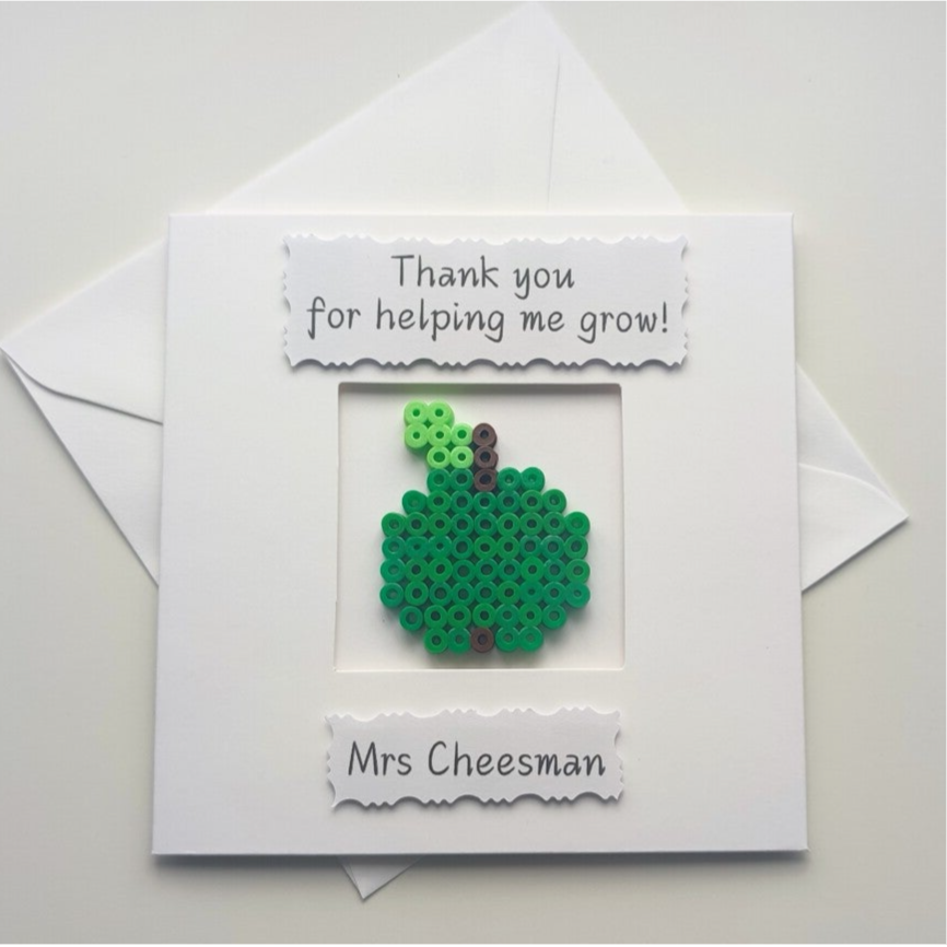 Teacher Thank You Card - Green Apple beads - Personalised