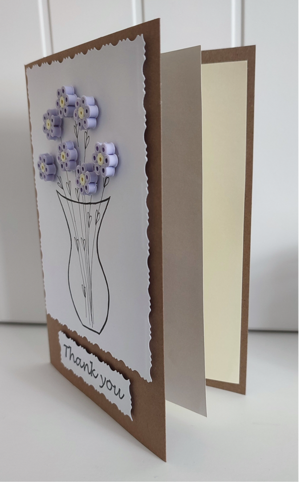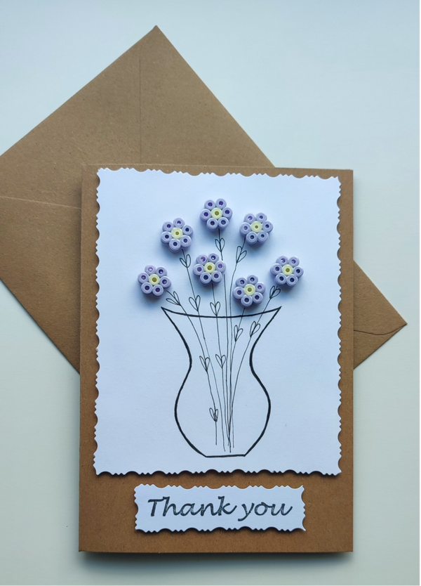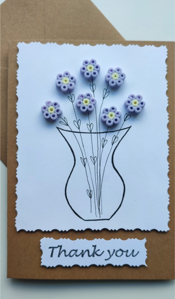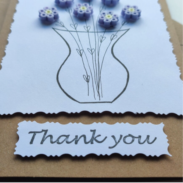 - Lilac beaded flowers in a vase detail, "Thank you" text