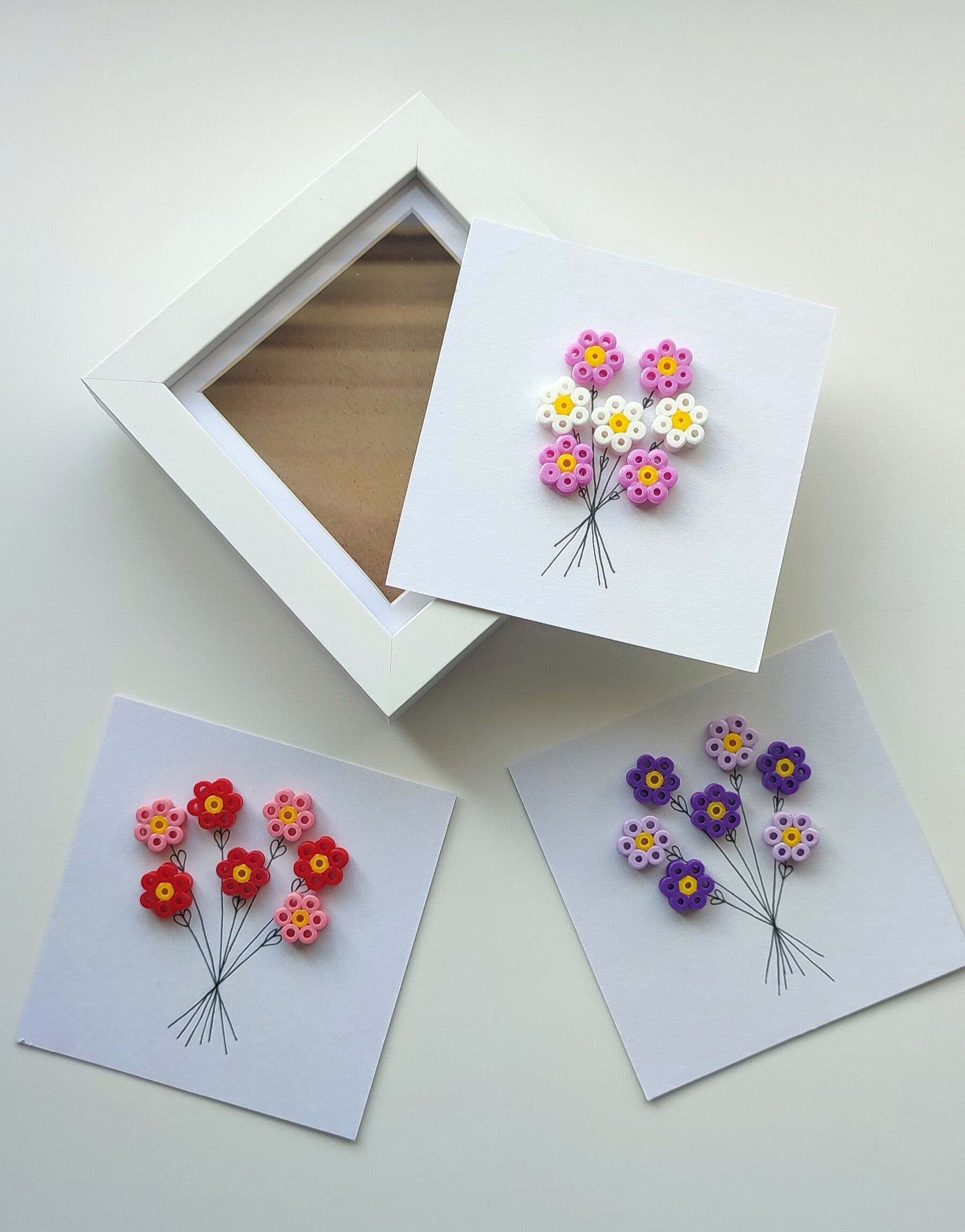 - Beaded floral bouquet detail on white card